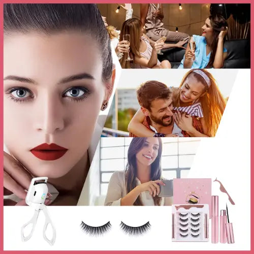 Pack de Pestañas Perfectas al Instante | Pestañas Magnéticas Naturales (+90usos)+Rizador de pestañas Eléctrico